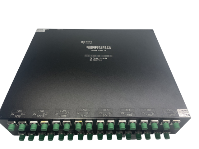 16通道电动光纤延迟线的工作原理主要基于光纤传输特性和电动调节机制。光纤作为一种高效的光信号传输介质,通过内部的全反射机制,使光信号以接近光速的速度在光纤内部传输。而电动调节机制则通过改变光纤的长度或折射率,实现对光信号传输速度的精确控制。具体来说,当电场施加在光纤上时,光纤的折射率会发生变化,导致光信号在光纤中的传播速度减慢,从而实现延迟效果。反之,当电场减弱时,光信号传播速度加快,延迟时间缩短。这种电动调节机制不仅响应速度快,而且调节精度高,可以达到纳秒甚至更小的级别。