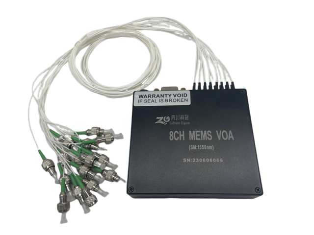 在8通道光衰减器模块中,每个通道均内置精密步进电机,通过控制电机的运动,精确调节衰减元件(如可调电阻、光纤错位装置等)的位置,从而实现对光信号强度的连续或分级可调。这种设计使得8通道MEMS光衰减器模块能够根据不同需求,轻松调节各通道的光信号衰减量,以匹配不同光纤传输路径的优化需求。