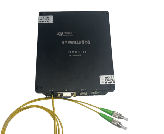 高功率掺铒光纤放大器的工作原理基于掺铒光纤的受激辐射放大效应。当泵浦光(通常为980nm或1480nm)照射到掺铒光纤上时,铒离子吸收泵浦光的光子,从基态跃迁到激发态。随后,当输入信号光(通常为1530-1565nm波段)的光子与处于激发态的铒离子相互作用时,铒离子发生受激辐射,释放出与信号光相同频率、相同相位的光子,从而实现信号光的放大。通过优化光纤设计、泵浦光源选择和参数控制,高功率掺铒光纤放大器能够在保持低噪声的同时,实现更高的输出功率和能量转换效率。